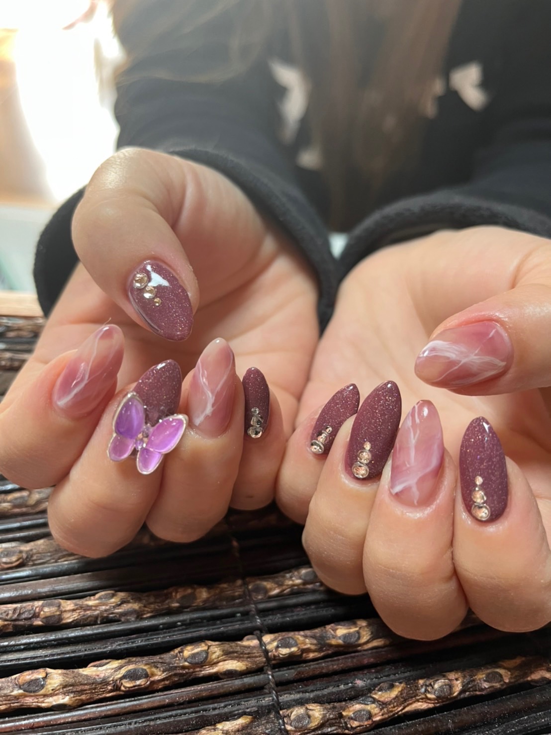 ボルドーネイル×秋の大理石ネイル