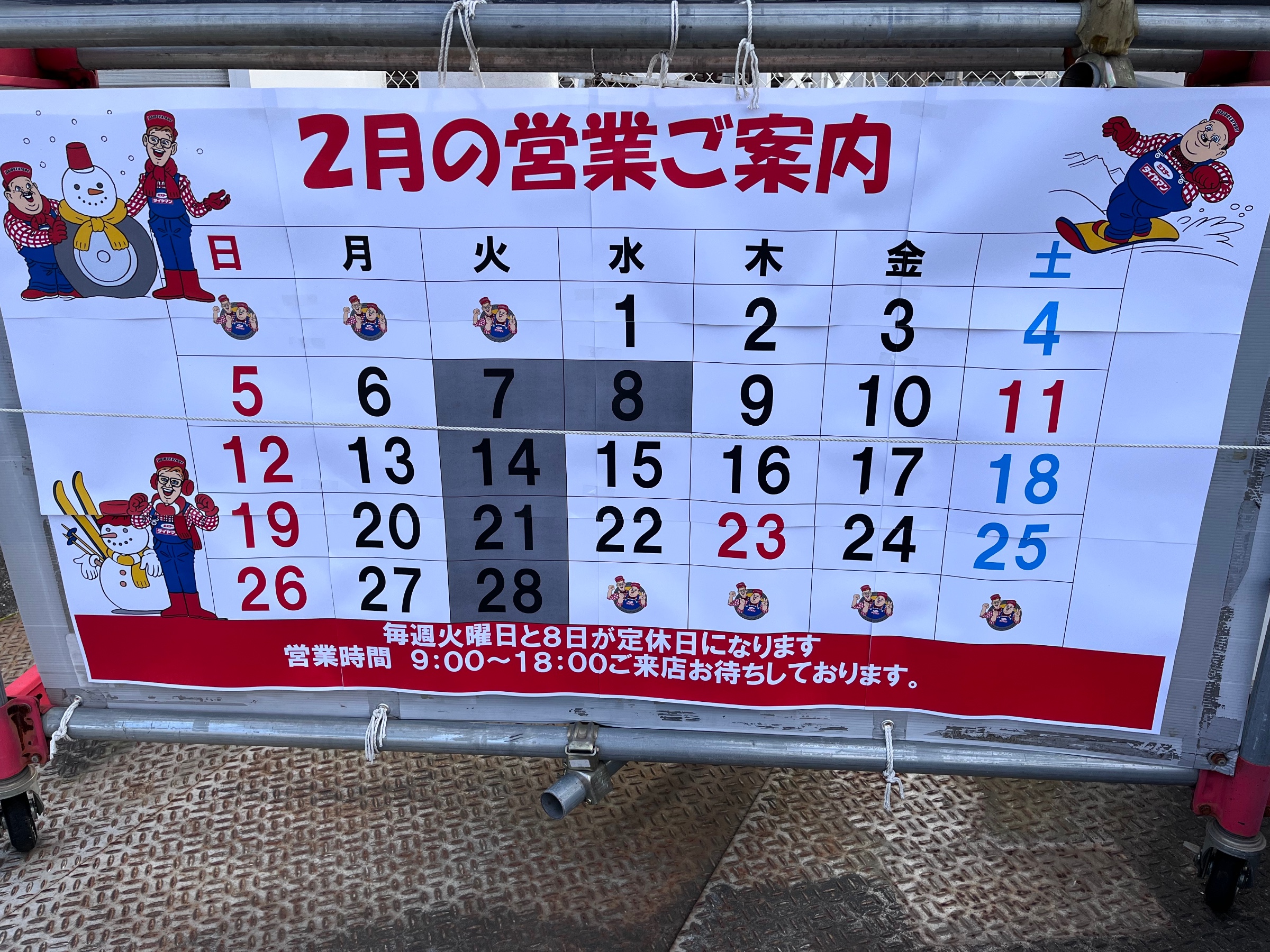 ★2023年2月定休日のご案内★ 2023年2月2日 こんにちはꈍ .̮ ꈍ 毎日寒い日が続きますね。 体調崩さないようお気をつけください。 2月も毎週火曜日お休みですが 誠に勝手ながら 2/8(水)臨時定休日となります。 宜しくお願い致します! 無料安全点検実施中です! 空気圧・残溝・傷確認などしております★ お近くにお越しの際は 是非ご来店ください(*´∀`*)