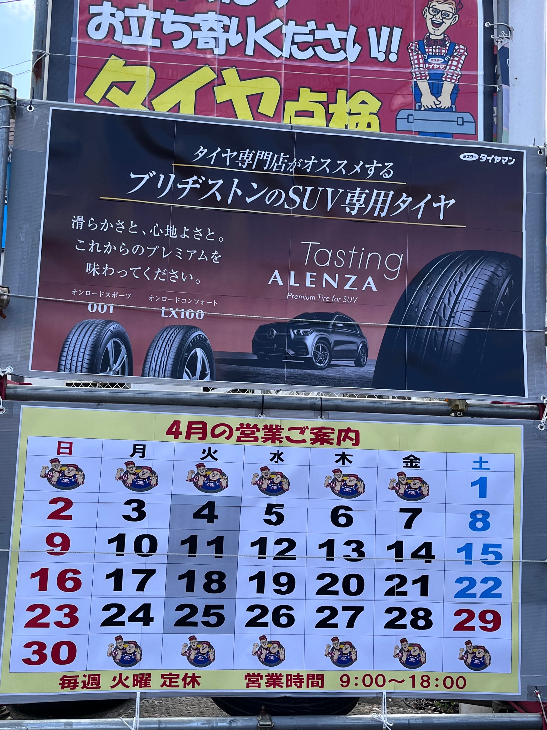 ★4月定休日★ 2023年4月3日 こんにちは(˶'ᵕ'˶ )︎ 新年度の4月ですね。❀ 今月も宜しくお願い致します*ˊᵕˋ* 4月の定休日は毎週火曜日となります! 暖かくなり車でのお出かけも増えるこの季節 タイヤの無料安全点検実施しております! 空気圧・残溝・傷確認などしております♪♪ お近くにお越しの際は 是非ご来店ください! お待ちしております( ⸝⸝•ᴗ•⸝⸝ )੭⁾⁾