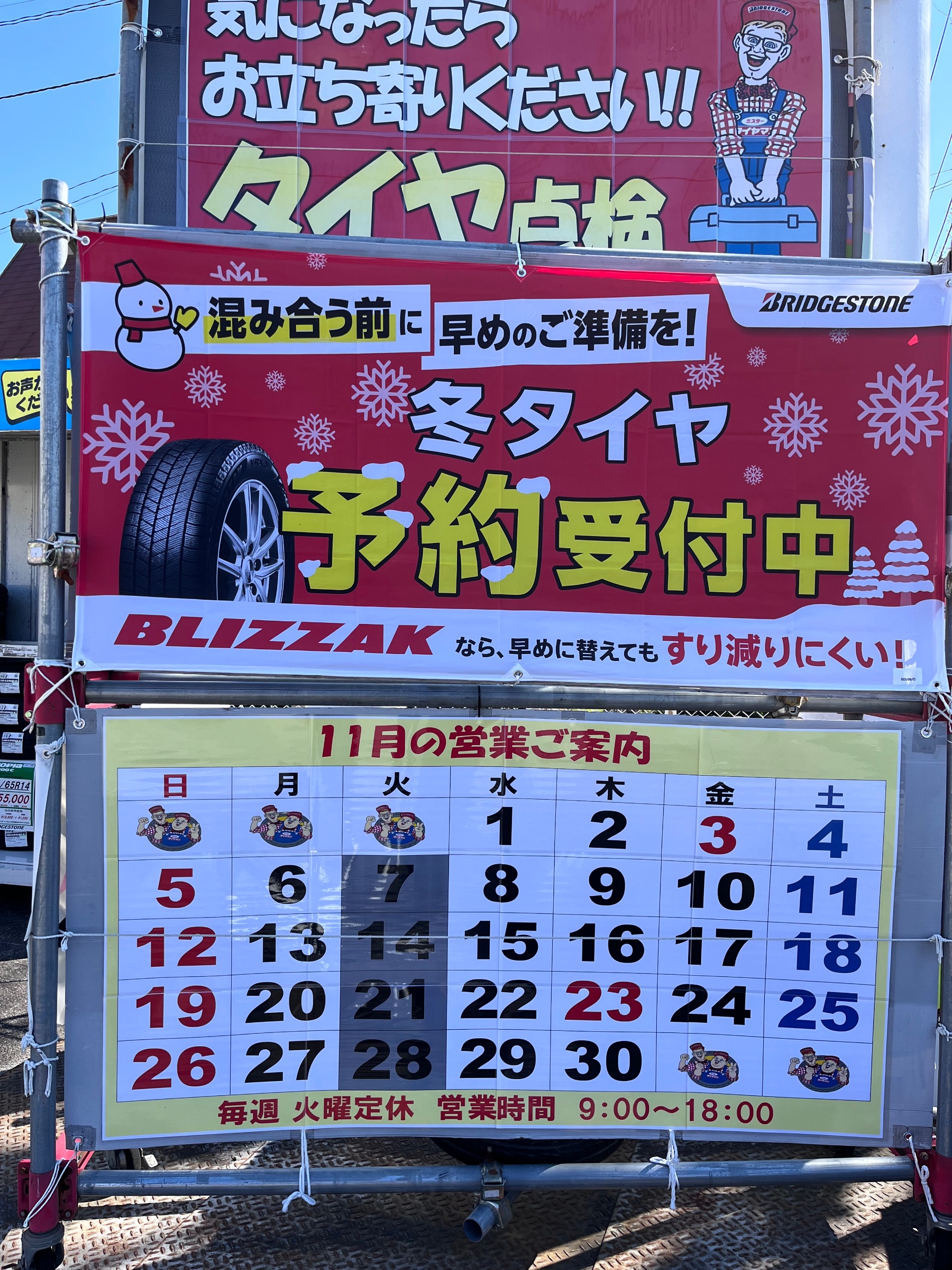 ★11月定休日★ 2023年11月1日 こんにちは*ˊᵕˋ* 日向が気持ちいい季節ですね(˶' ᵕ ' ˶) 11月の定休日は毎週火曜日です。 宜しくお願い致しますm(_ _)m スタッドレスタイヤのご予約もお受けしております!! 秋の行楽のお出かけ前に 空気圧点検など致しますので 是非ご来店お待ちしております(*ˊ꒳ˋ*)