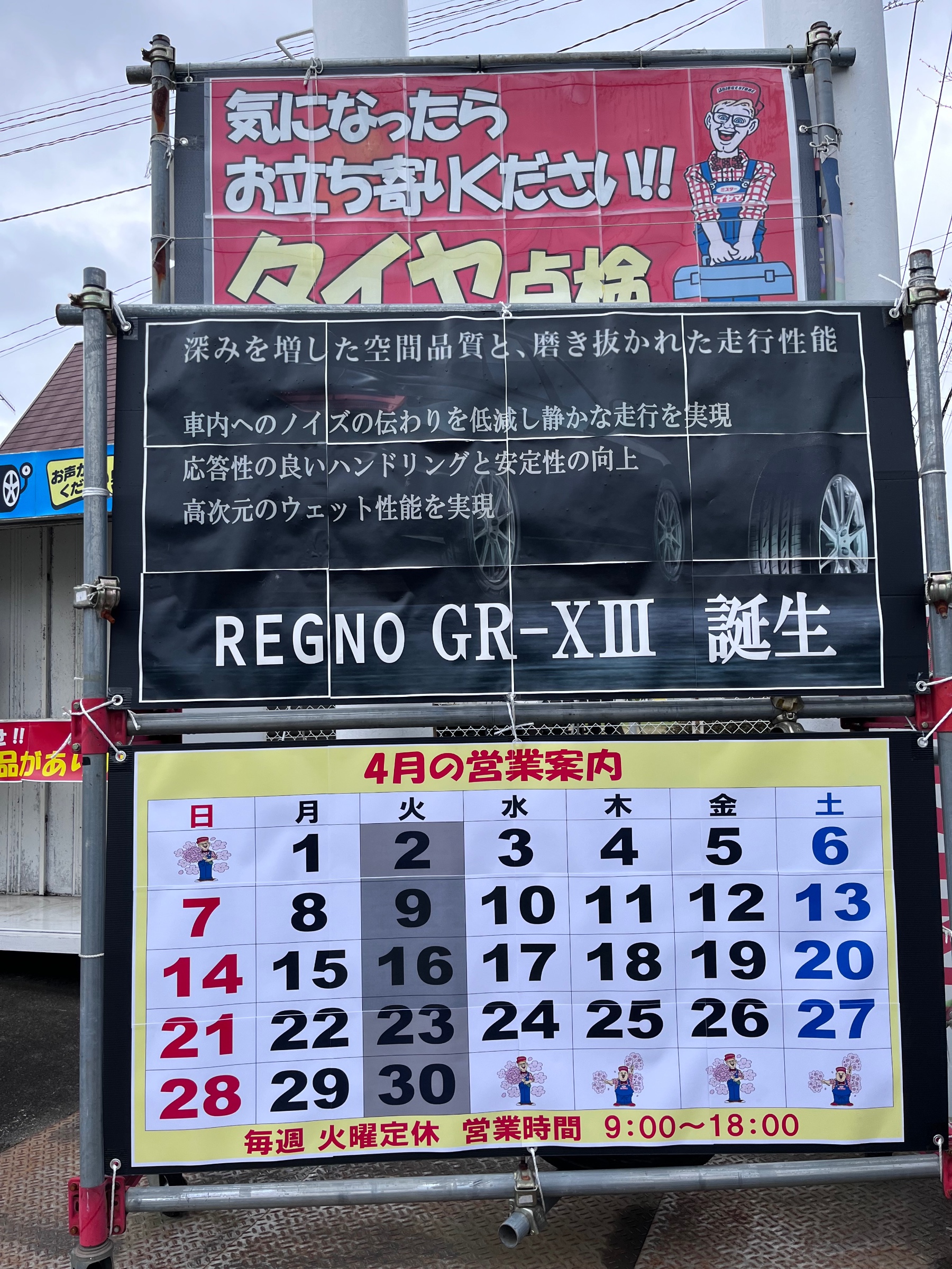 ★4月定休日★ 2024年4月1日 こんにちは( ੭´꒳`ᑦ ) 4月になりました❀* 入学式があったり新生活が始まりますね♡ 4月の定休日は毎週火曜日となります。 スタッドレスタイヤから夏タイヤの履き替えや タイヤのご相談お待ちしておりますm(_ _)m 無料安全点検致します!! 是非御来店くださいませm(_ _)m