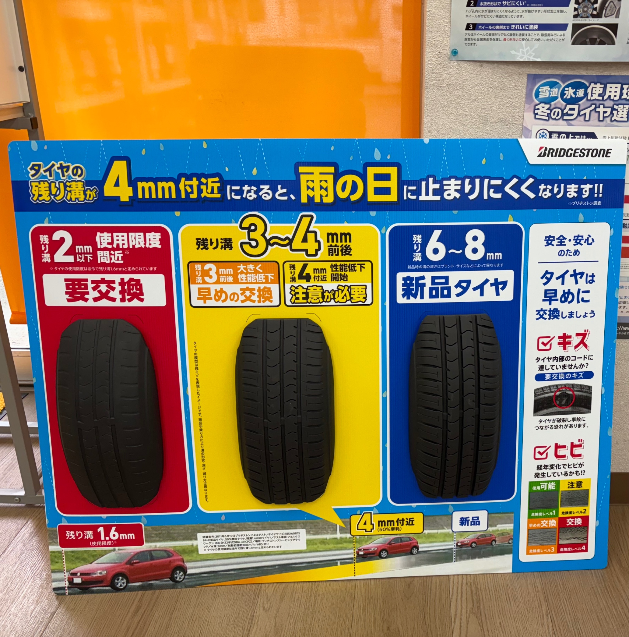 雨の日はタイヤの溝が減っていると