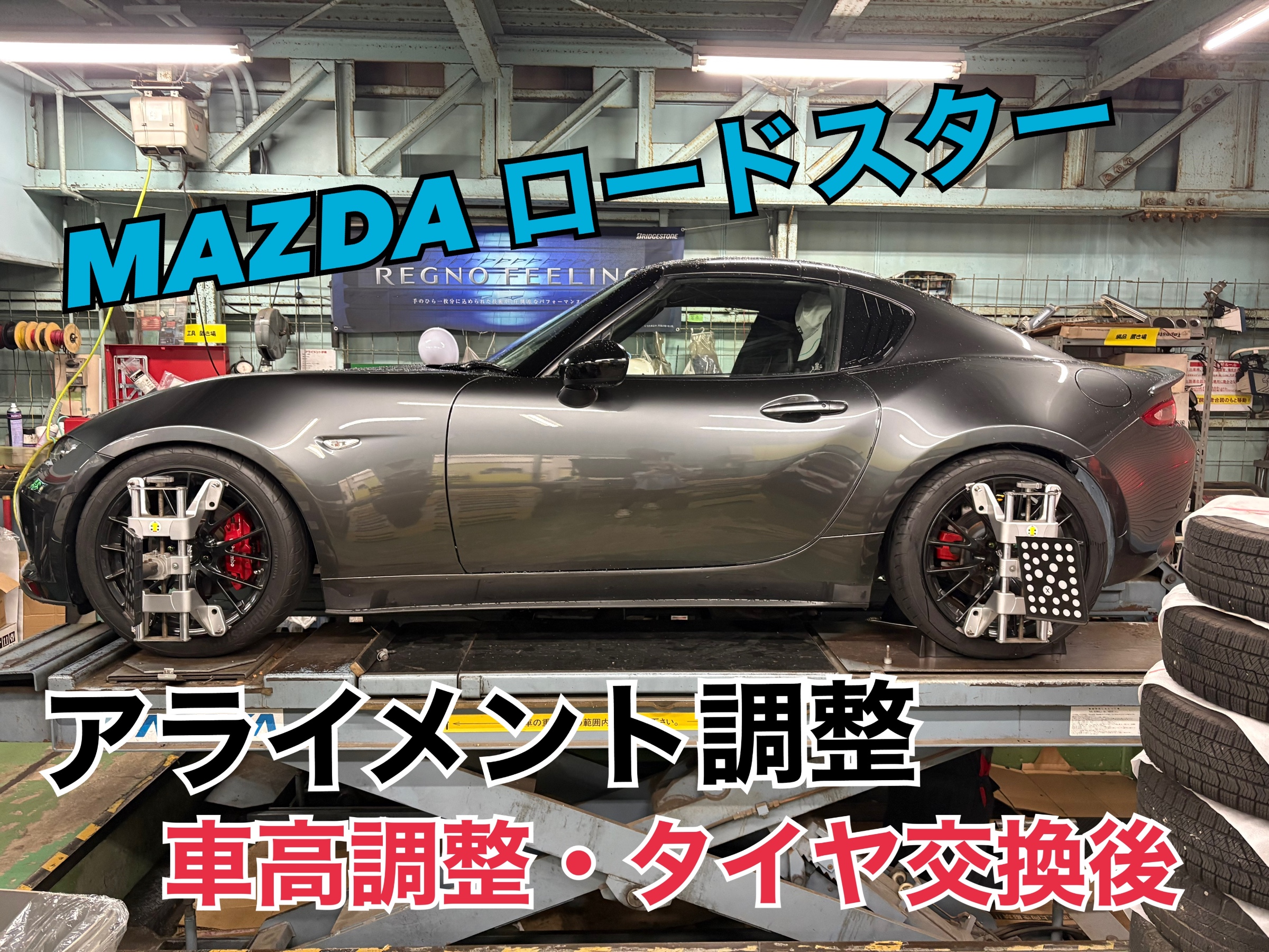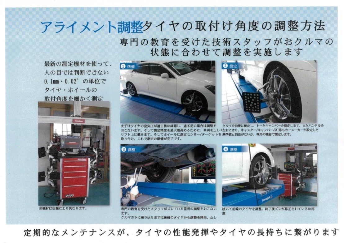 車高調整、タイヤ交換後の