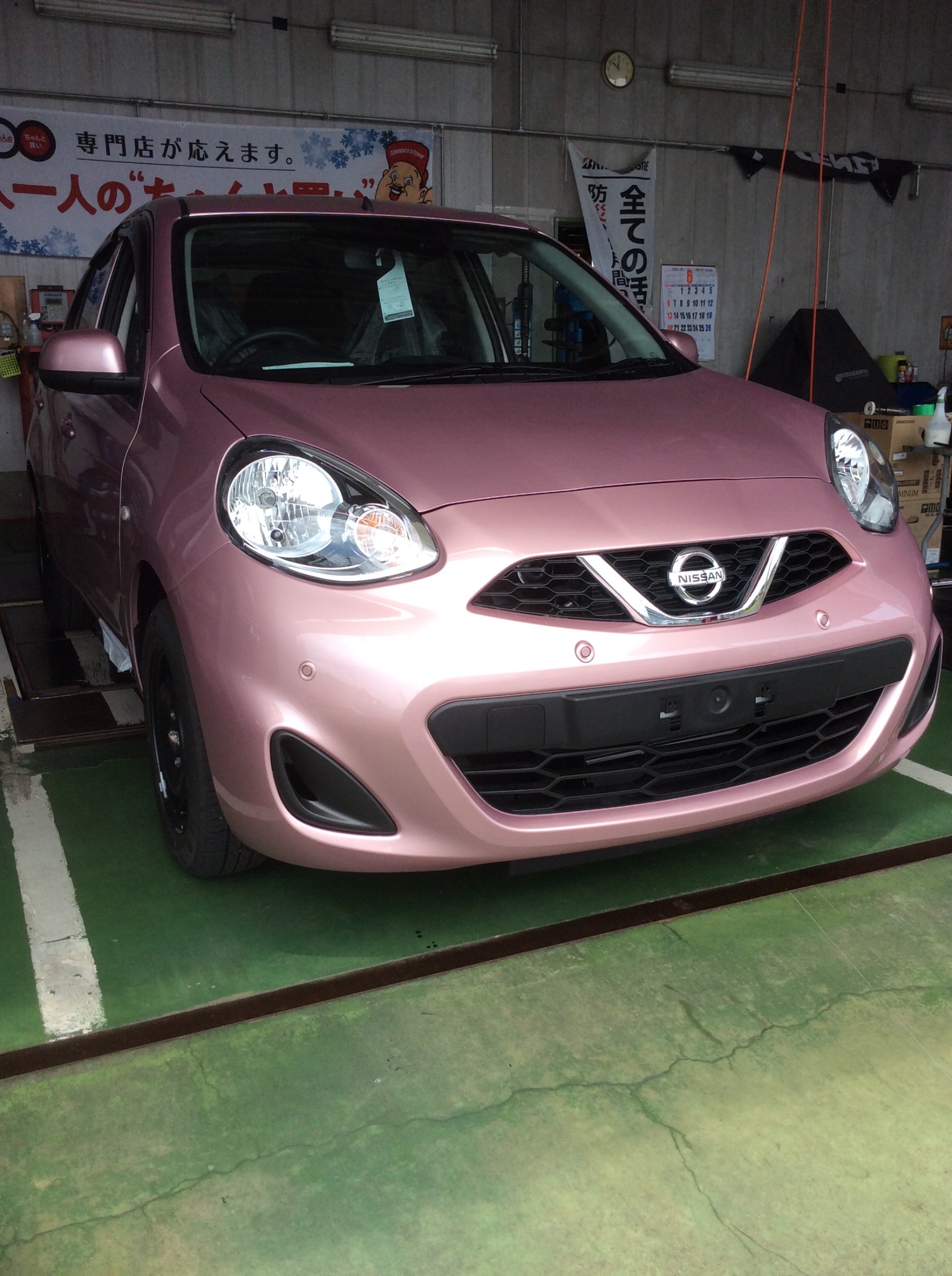 マーチが入庫。それでは取付していきます。