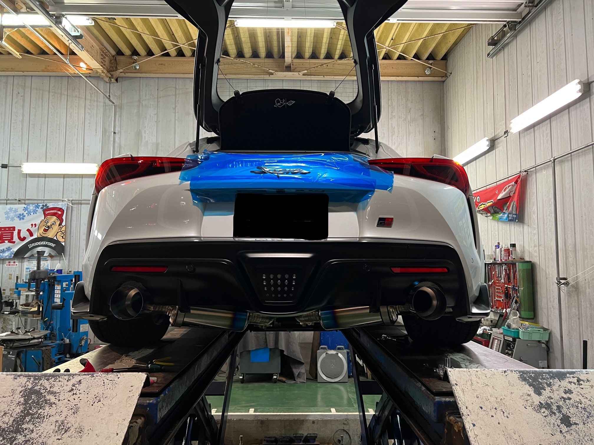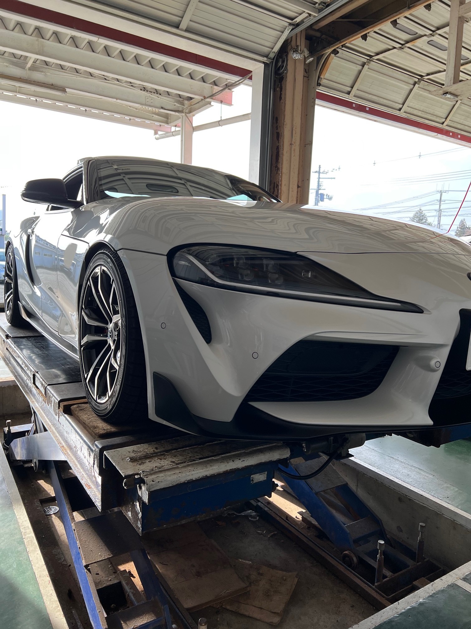 本日は、前回車高調を取り付けさせていただいたスープラが入庫。