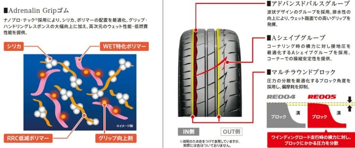 カジュアルスポーツタイヤの POTENZA Adrenalin RE005