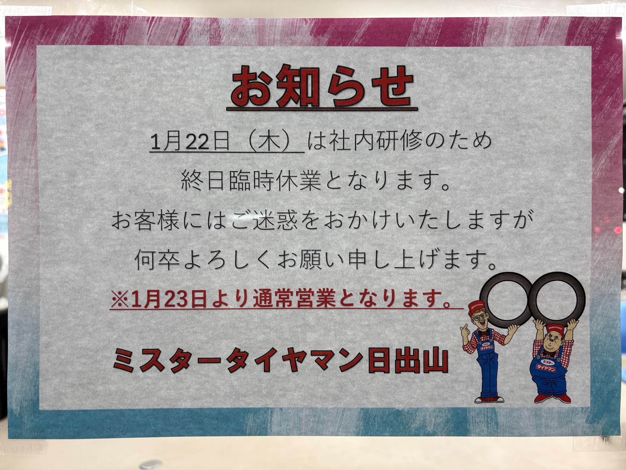 お客様にはご迷惑をおかけいたしますが、よろしくお願いいたします。