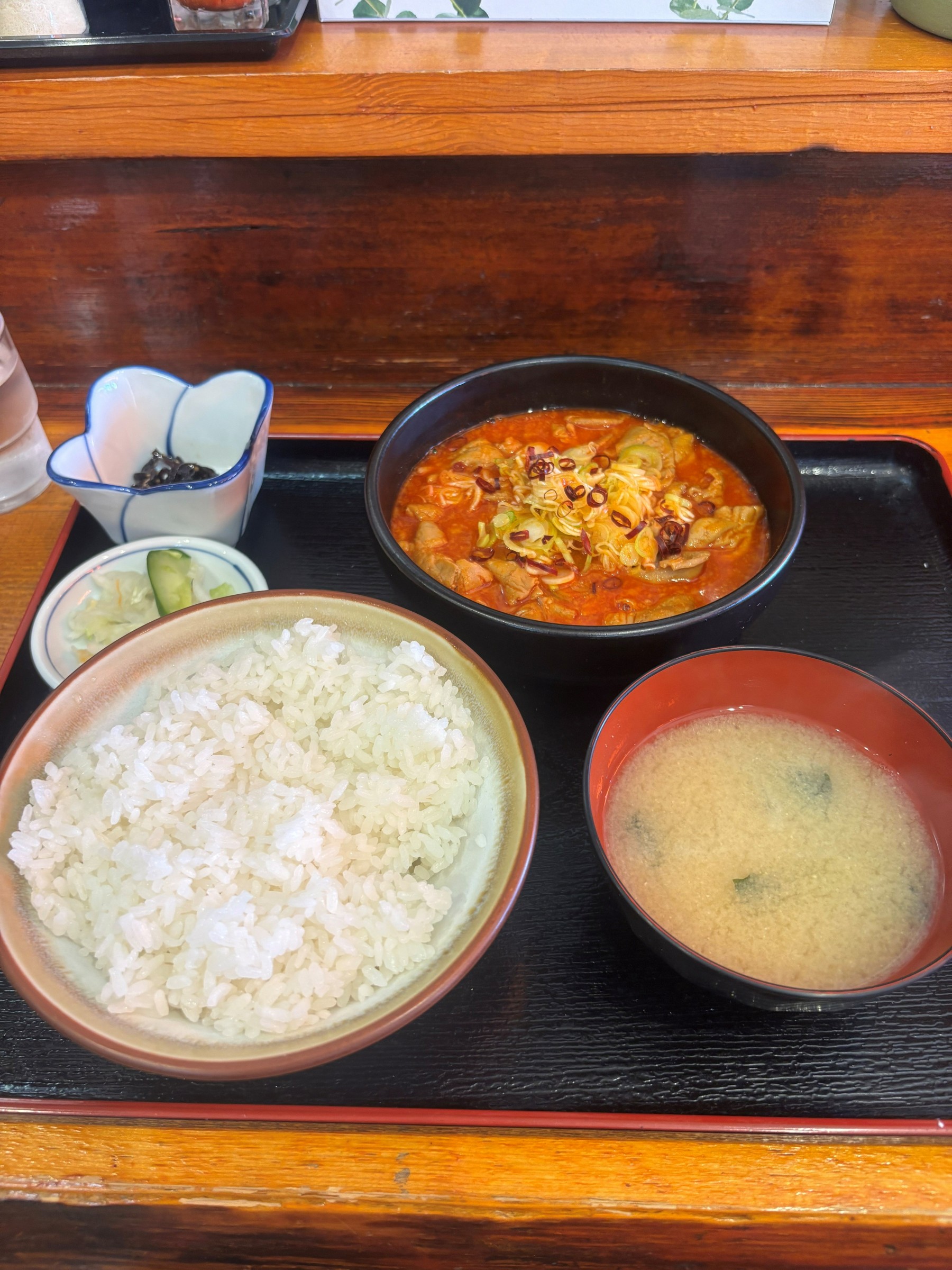 柔らかく煮込んだピリ辛のもつに複雑で濃厚なスープはご飯によく合います