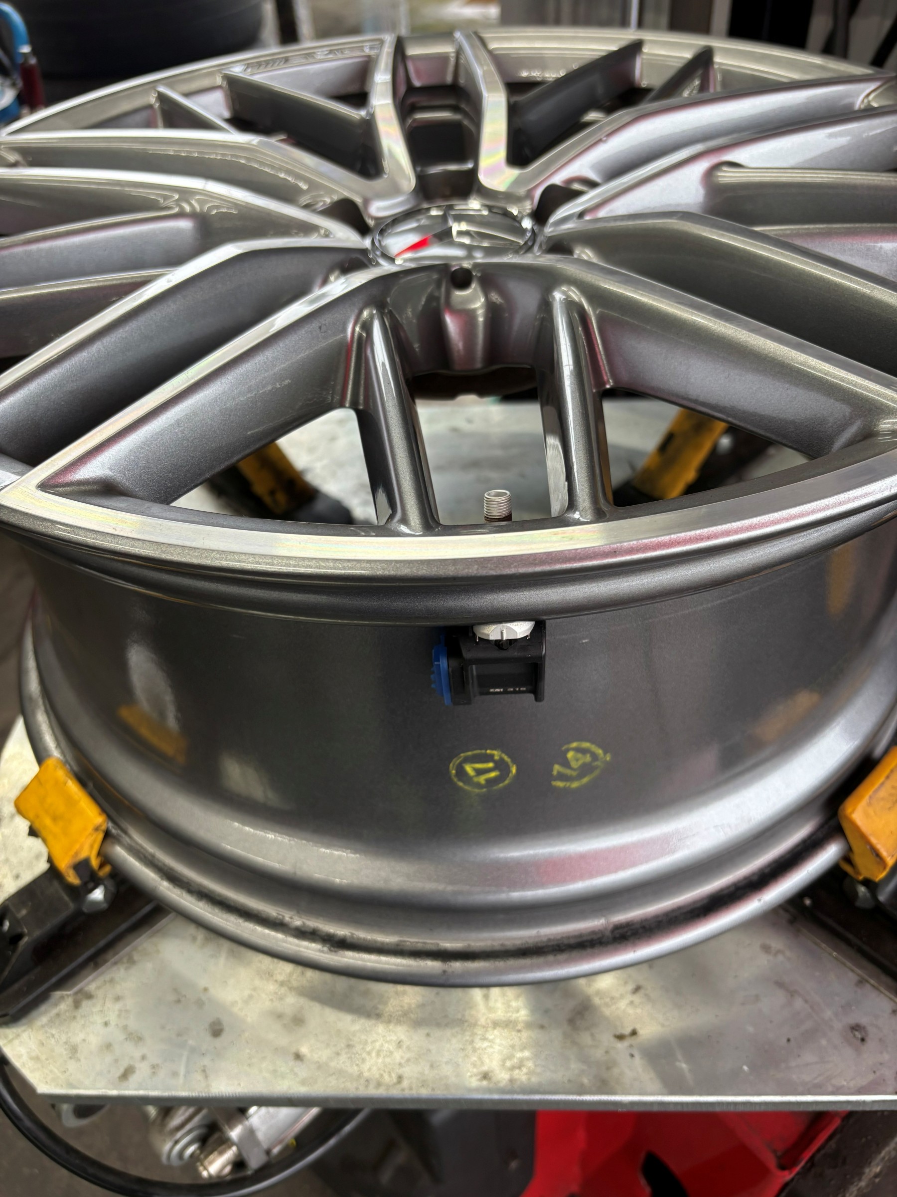 空気圧センサーに気を付けながら組替作業をします