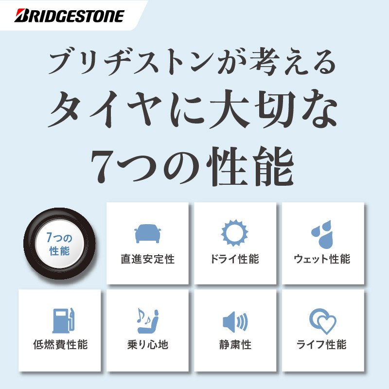 Q.「ちゃんと買い」とは? A. ブリヂストンが提案する「クルマの性能を引き出すためのタイヤの選び方」です。 新車時に装着されているタイヤは、クルマの性能を引き出すためにそのクルマの特性に合わせて設計されたタイヤです。タイヤ交換をしても同じ性能を引き出すために、新車装着タイヤを基準にタイヤを選ぶことをおすすめします。当店スタッフがお客様に”ぴったり”のタイヤをご提案させていただきます。お気軽にご相談ください‼