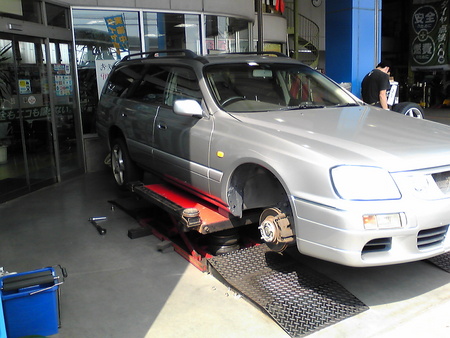 ステージアのタイヤ交換で~す。投入タイヤはplayz!最近よく売れてます。