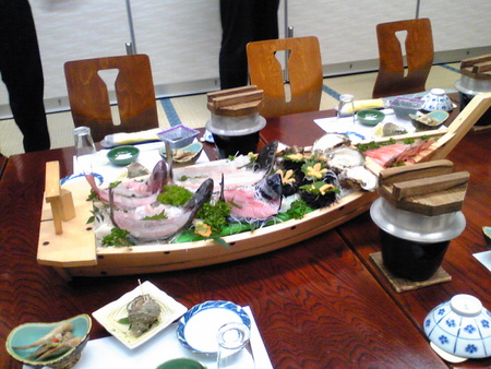 いろんな魚の船盛です。とれたてのイカはかなりおいしいですよ~。