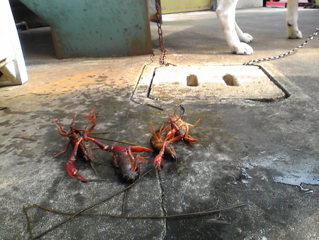 店の裏のドブ川のゴミ拾いをしてみたらザリガニを捕まえました、昔を思い出すなぁ。