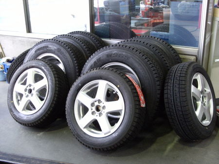 この時期、当店の作業場は納品待ちのホイルセットが転がってます(-。-)