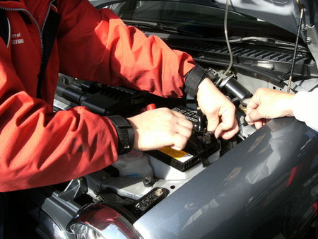 というわけで画像は、常連のT様のお車のバッテリー交換です。