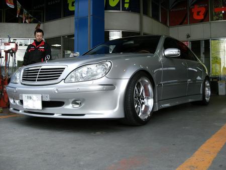 タイヤ交換で来店いただいたN様のベンツSクラス。ブリブリのワイドボディになってます。ホイールも超深リムでした。