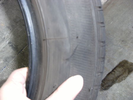 尖った縁石にぶつけたりすると、こんな感じで切れてしまいます。