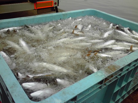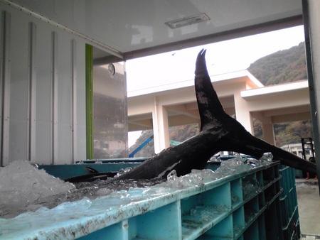 そのカゴからはみ出してるでっかいカジキの尻尾、、、