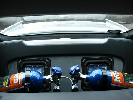 前向きに8インチのサブウーファーを2発!とNOSボンベをデュアルで!!
