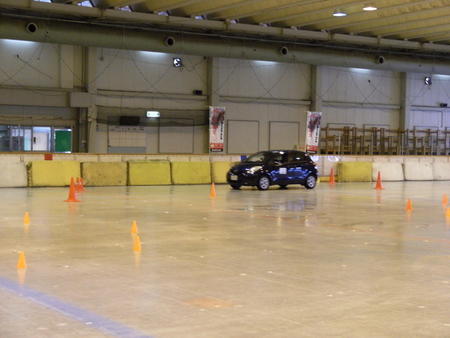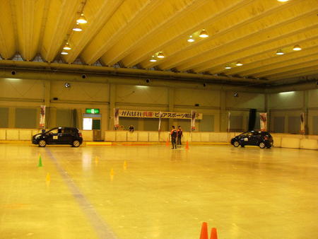 スケート場を借り切ってスケートリンクの上を走行します。