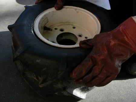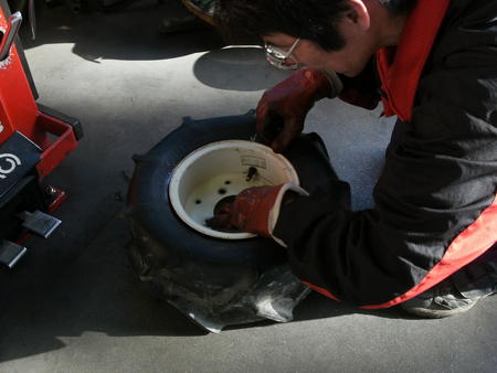 スタッドレス取り付けの合間に、農閑期ですから、「バインダー」というコンバインの小さいバージョンの機械のタイヤのパンク修理もあったりして。