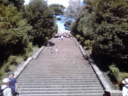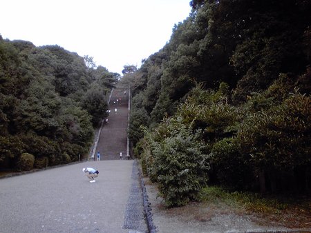 「伏見桃山陵(明治天皇陵)」へはこの階段を登るか