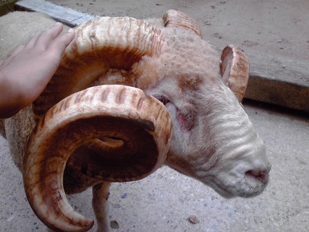 でも、羊の巻き巻き角がすごく立派で硬くてびっくりしました。