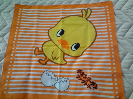 めっちゃ可愛い「ひよこちゃん三角巾」に身を包み、真剣な表情で「チキンラーメン」を手ゴネで作って参りました。