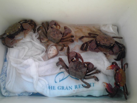 こんなにいっぱいカニ持って帰ってきて誰がめんどうみるんでしょうか(--;)