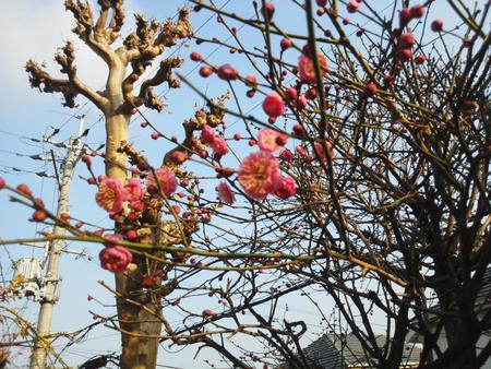 そんな間に、庭の梅はツボミから開花へと表情をかえております。