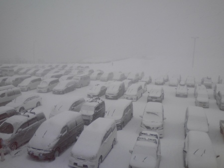 子供たちはスキーそっちのけで吹雪の中(いやもうカミナリも時々鳴ってた)