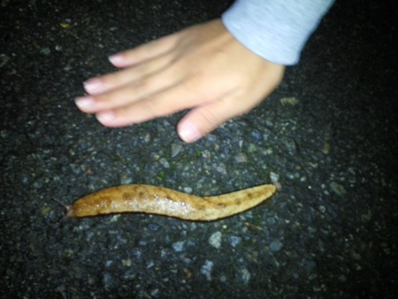 キャンプ場でこんなでっかいナメクジさんに遭遇しました(TOT)