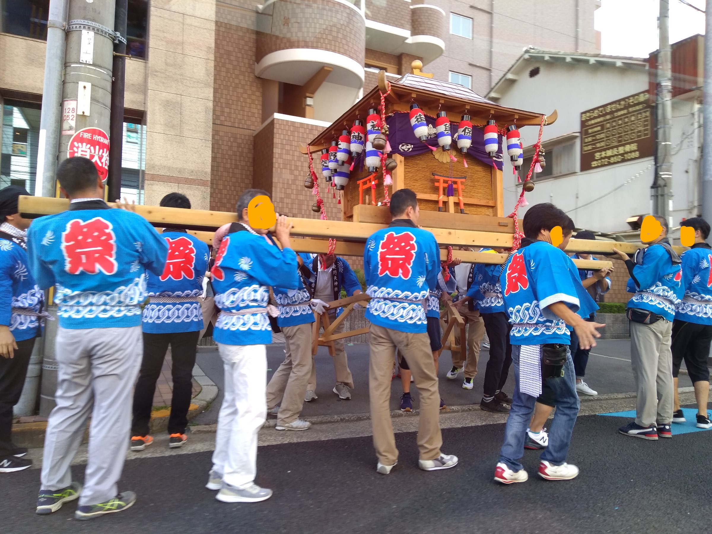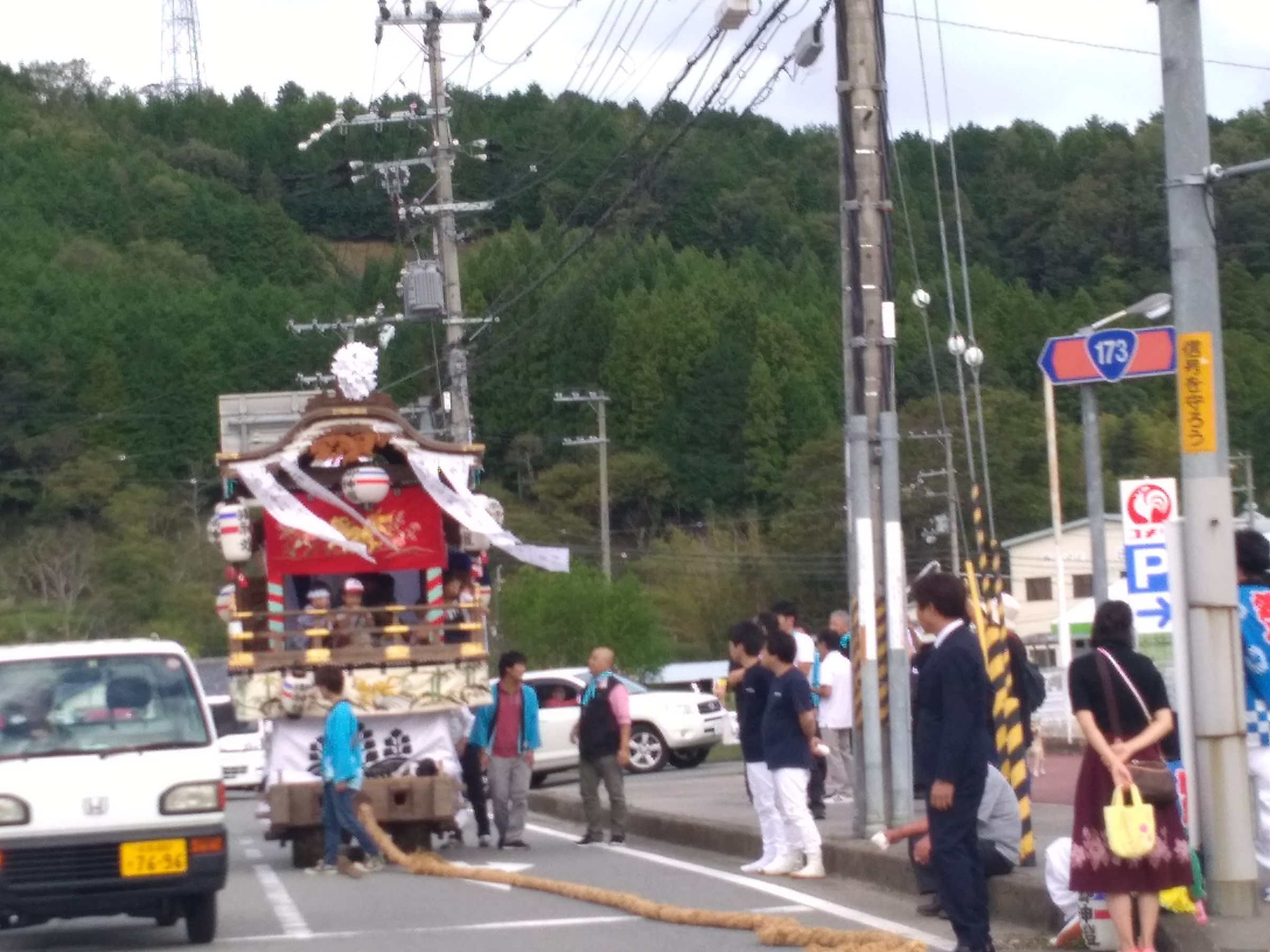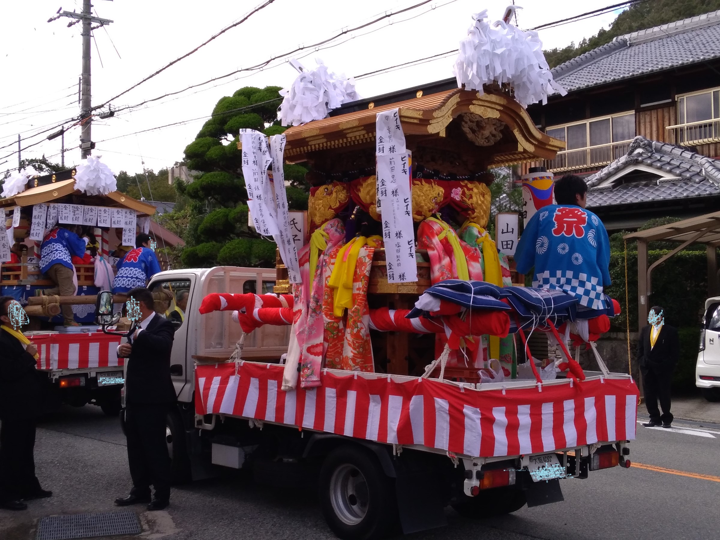 ちょうどお祭りがやってまして、お神輿が2トン車に搭載されているという、、、
