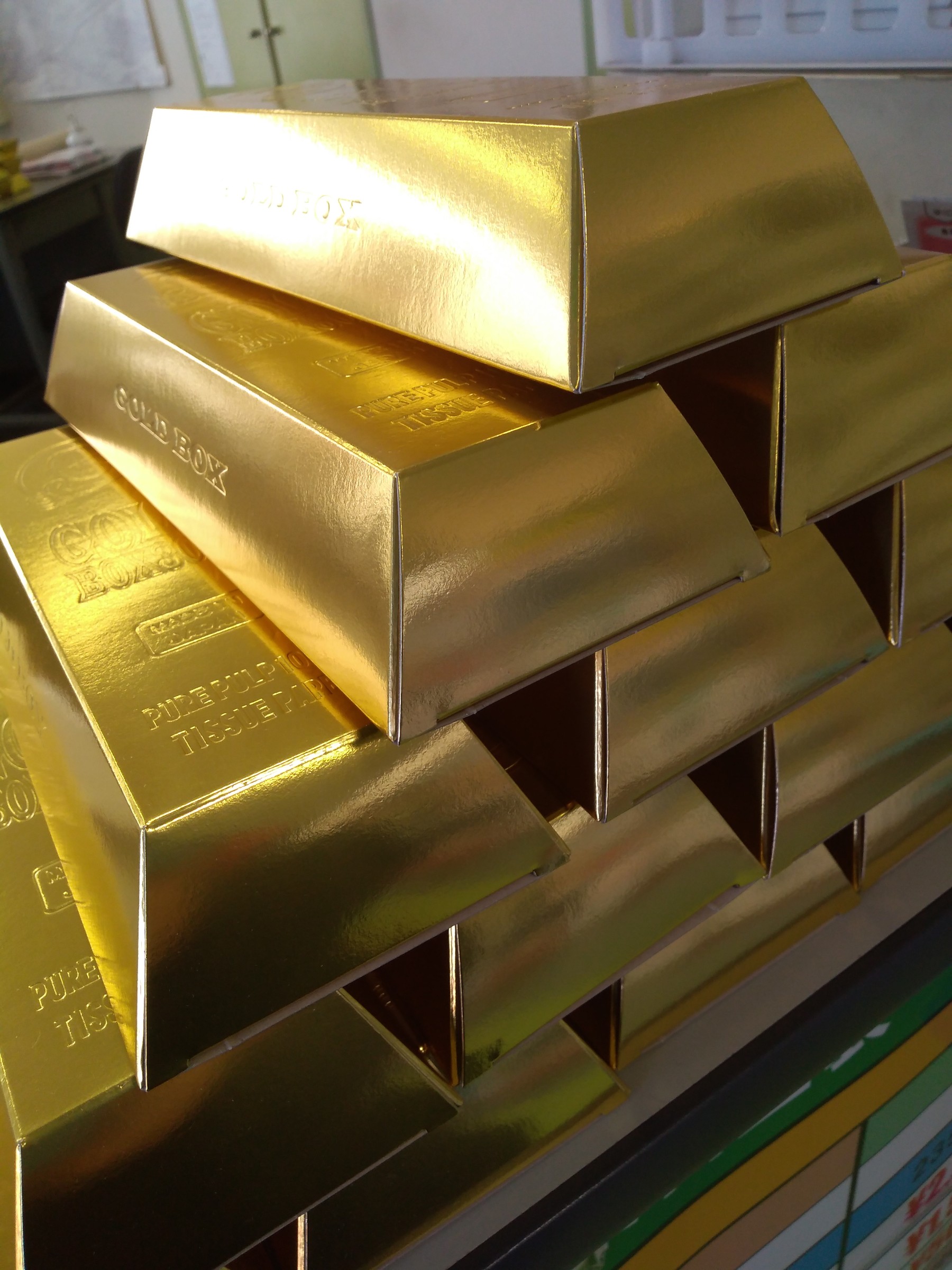 どどーーーんと金の延べ棒ならぬティッシュボックス進呈します❤( ̄y▽, ̄)╭