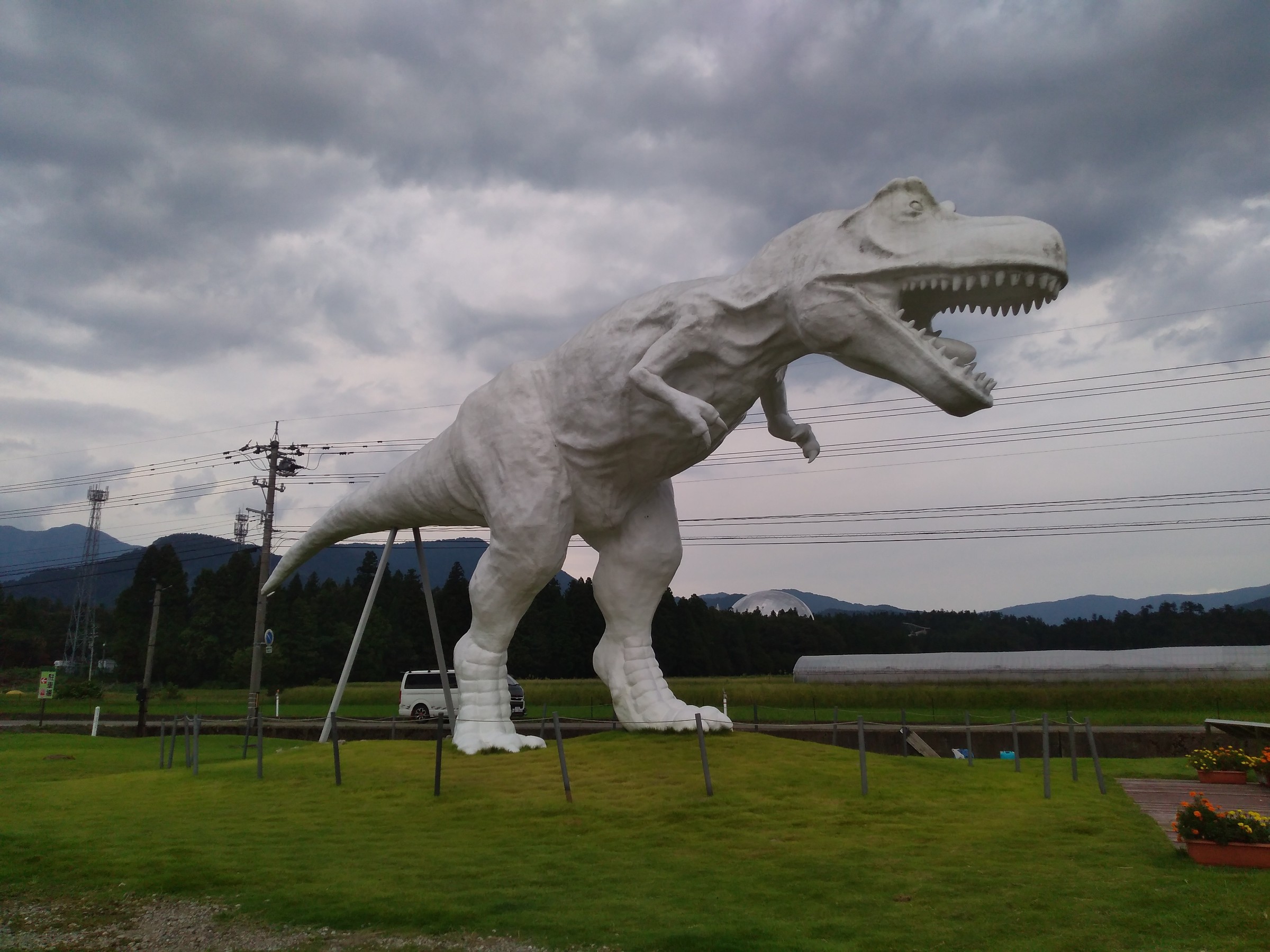 この恐竜は越前和紙で出来ています。