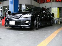 本日はタイヤの裏返しで来店のクラウンです。 WALDのボディキットが付いててカッコイイです。