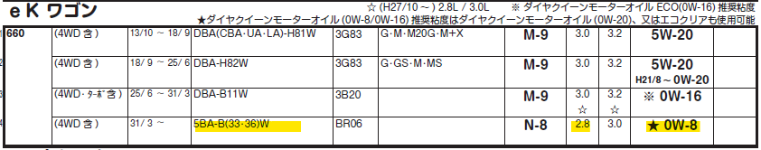 オイルは0W-8指定で
