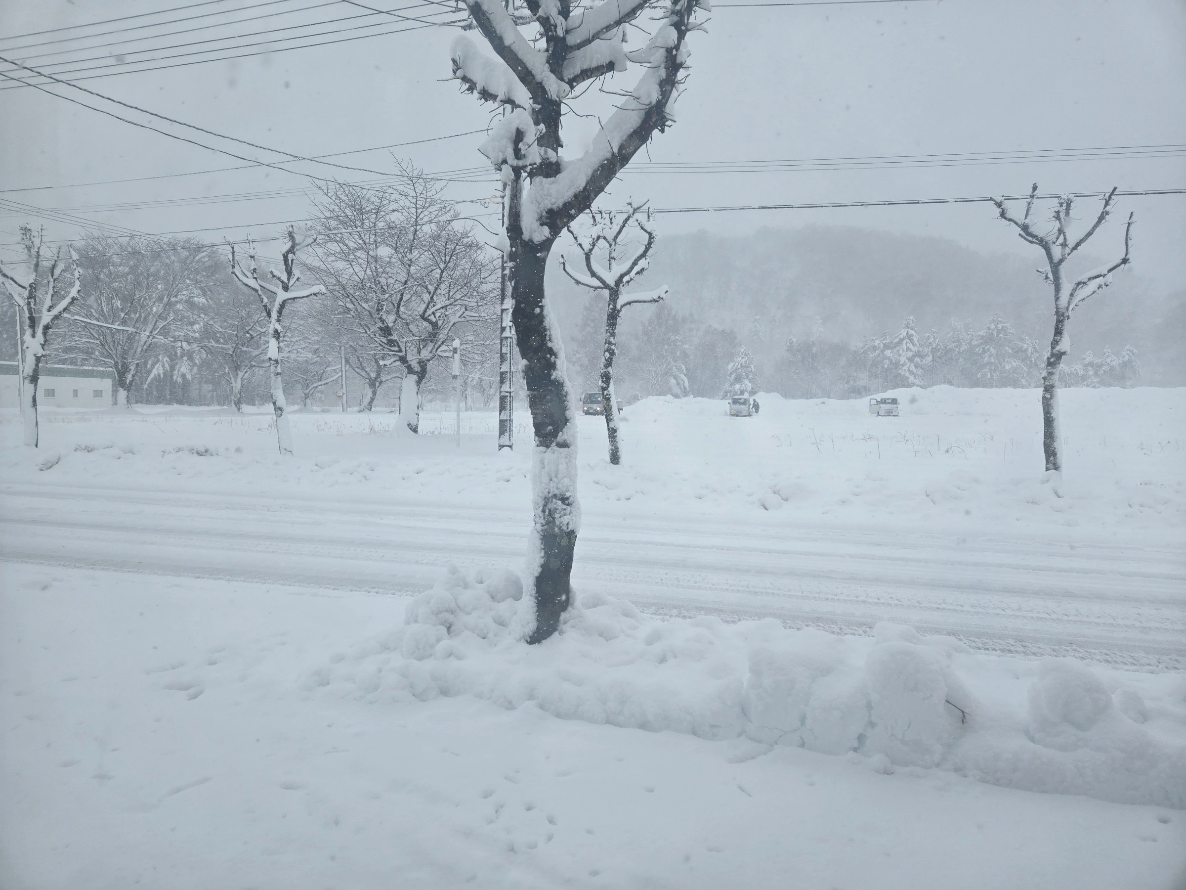 大雪の中、学校へ登校しました