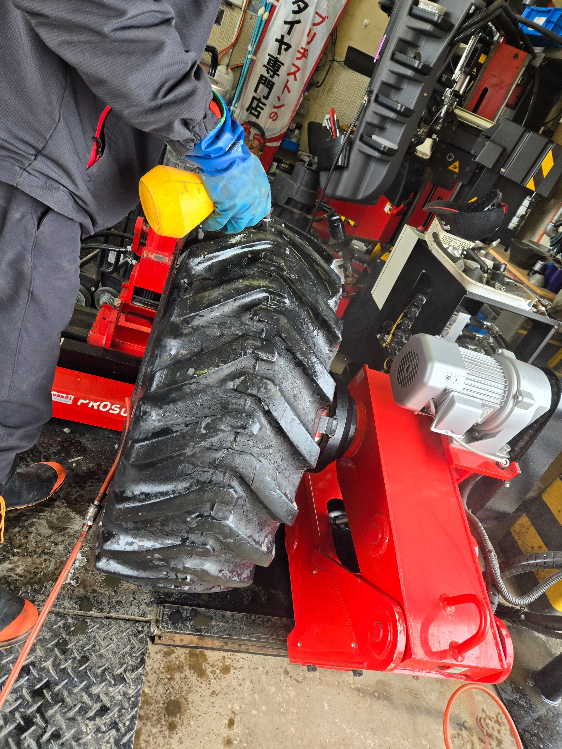 トレッド面に水をかけ点検