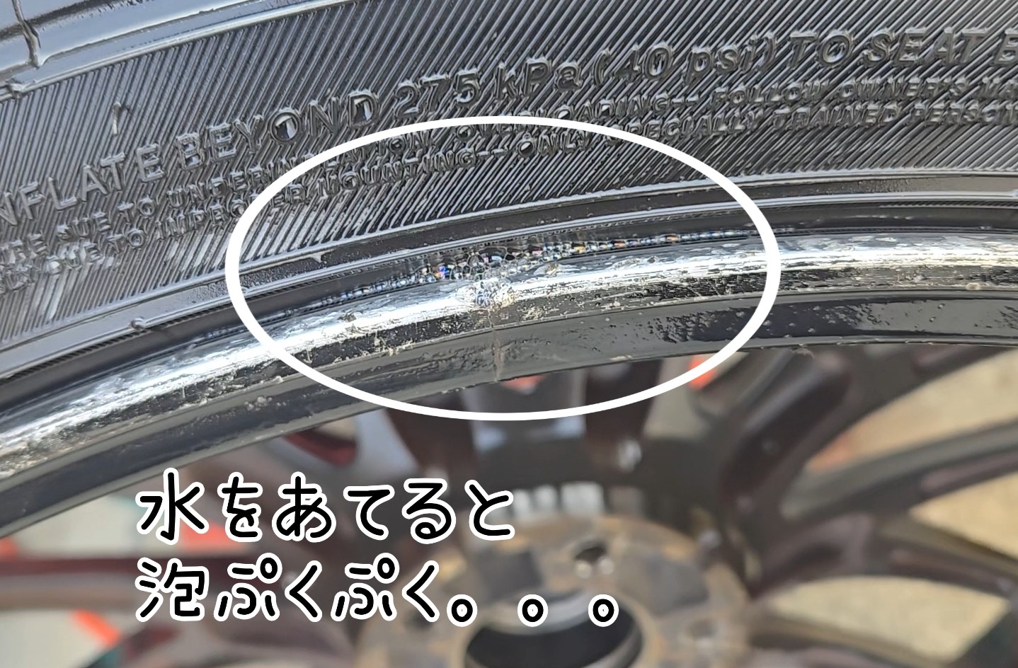 しっかり空気も漏れてますね。。。