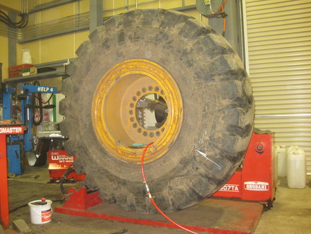 ORタイヤチェンジャーという器械に掛けてタイヤをホイールから外し