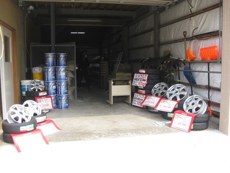 倉庫をお借りしてタイヤ・ホイールの展示特売をして来ました