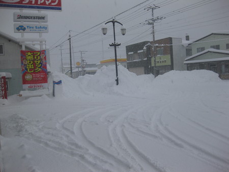 街はイたるところに雪の山です