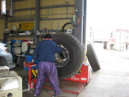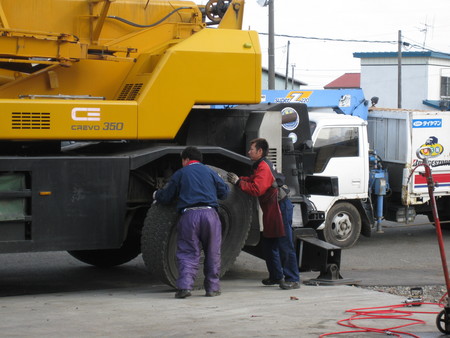 さて今日は大型ホイールクレーンのスノータイヤ交換の