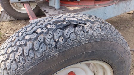 畑から畑へトラクターに引かれて移動するのですがタイヤが経年劣化で