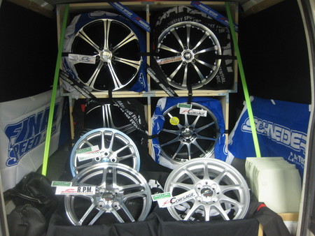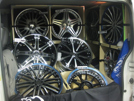 セールスの方が新作ホイールをハイエースに積み込んで紹介にして