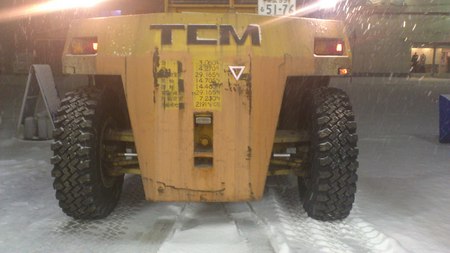 今日は年明け早々に作業させて頂いた20トンフォークリフトのスノータイヤ交換を