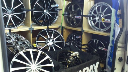 今年もマルカサービスさんがこの春の新作ホイールをバンに満載にして