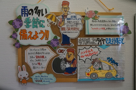 当店のトイレの掲示板も「雨に日対策」に変わりました~。