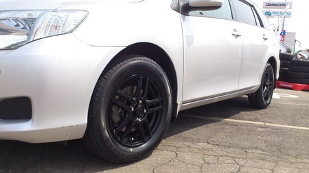 写真はカローラフィルダーにタイヤ&ブラックホイールをお買い上げ